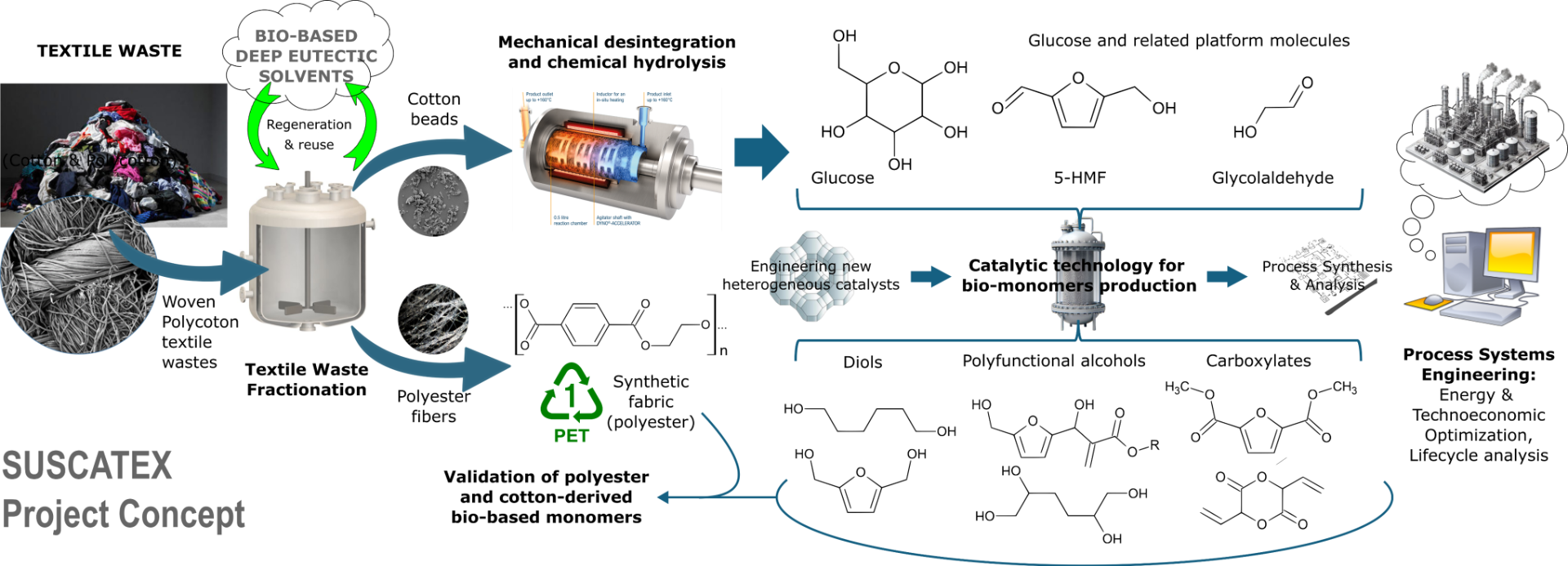Design and optimize sustainable chemo-catalytic pathways to convert cotton textile waste into chemicals of industrial interest, reducing environmental impact and promoting the circular economy in the textile sector.